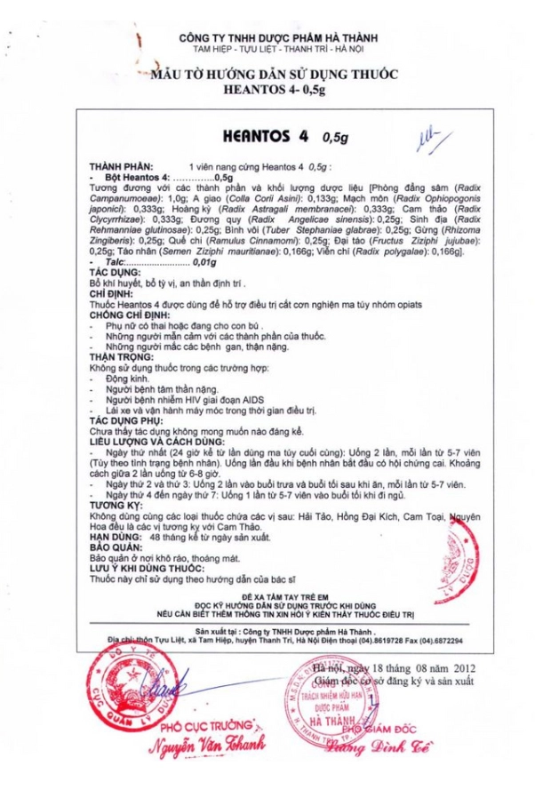 Thuốc Cai Nghiện Ma Túy Heantos 4 Chính Thức Được Phê Duyệt Mẫu Bao Bì Và Hướng Dẫn Sử Dụng